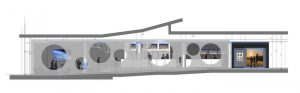 Neben dem passend zum Konzept gestalteten Foyer erlebt der Besucher ein außergewöhnliches Kino: Der Eingangstunnel mit seiner s-förmigen Grundstruktur bildet eine Schleuse zwischen den Welten drinnen und draußen.