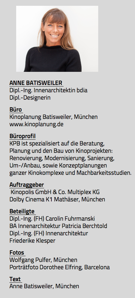 Fotos: Wolfgang Pulfer, München (Dolby Cinema München), Dorothee Elfring, Barcelona (Portrait Anne Batisweiler)