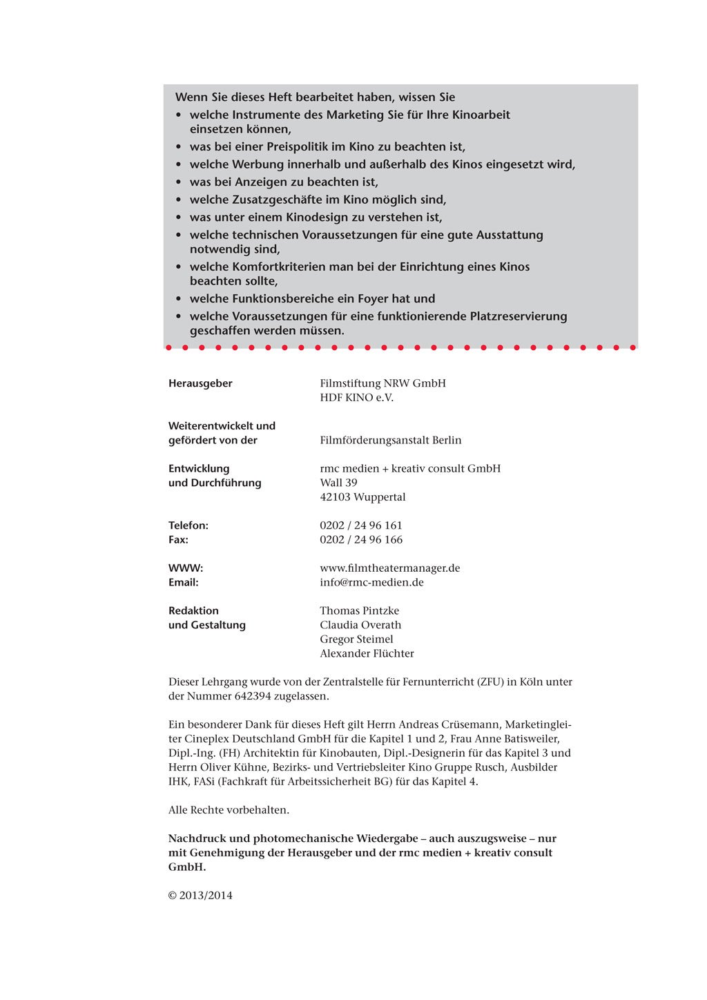 ZYKLUS 4 MARKETING 4 / Film- und Kinomarketing, Service und Ausstattung